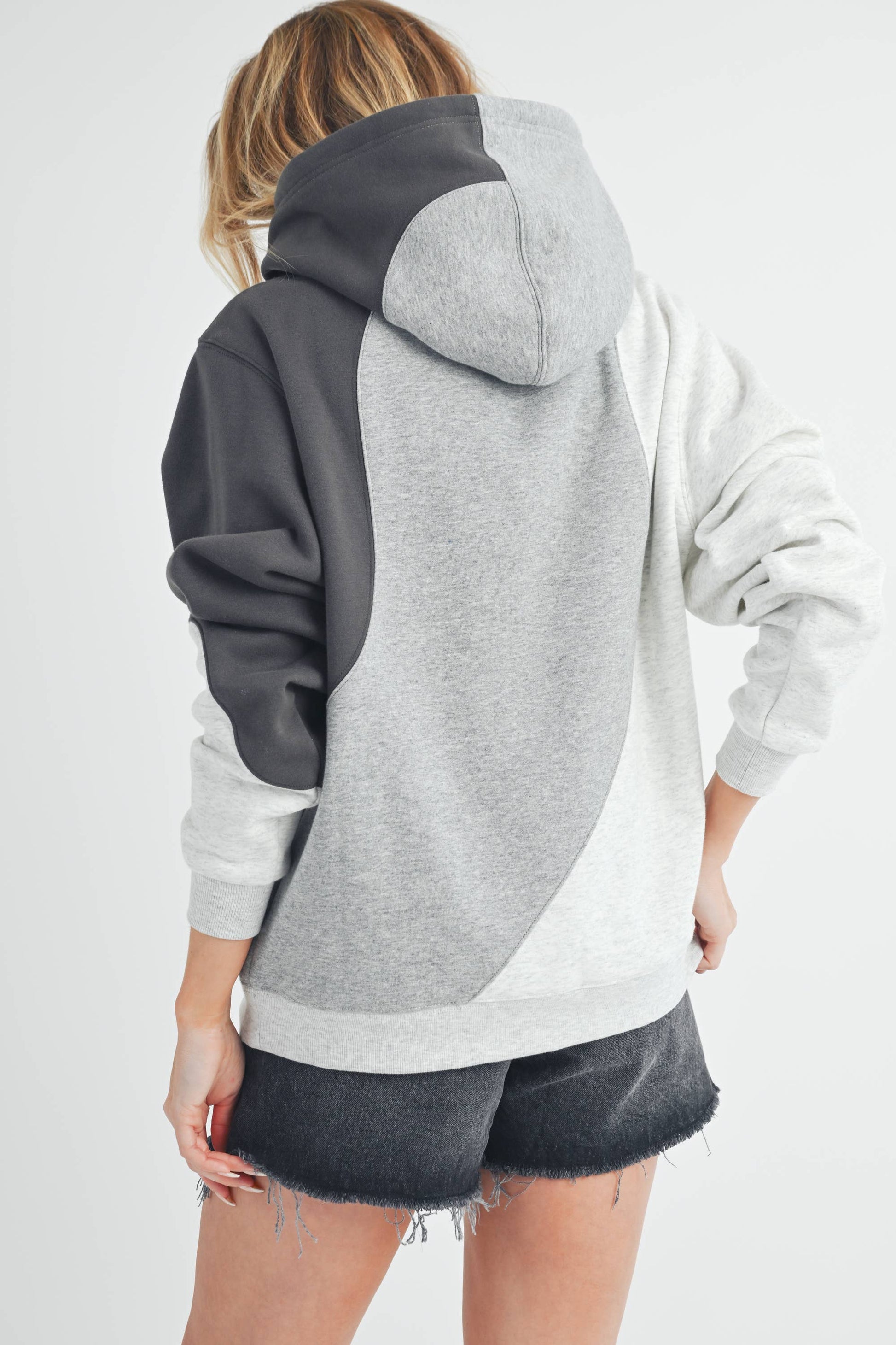 Embrace comfort and style with the oversized Wavey hoodie, crafted from the soft French terry fabric. Designed for comfort from studio to street, the Wavey hoodie features a fleecy interior, a seamed wave pattern, and a color block neutral palette that stays fresh year-round.