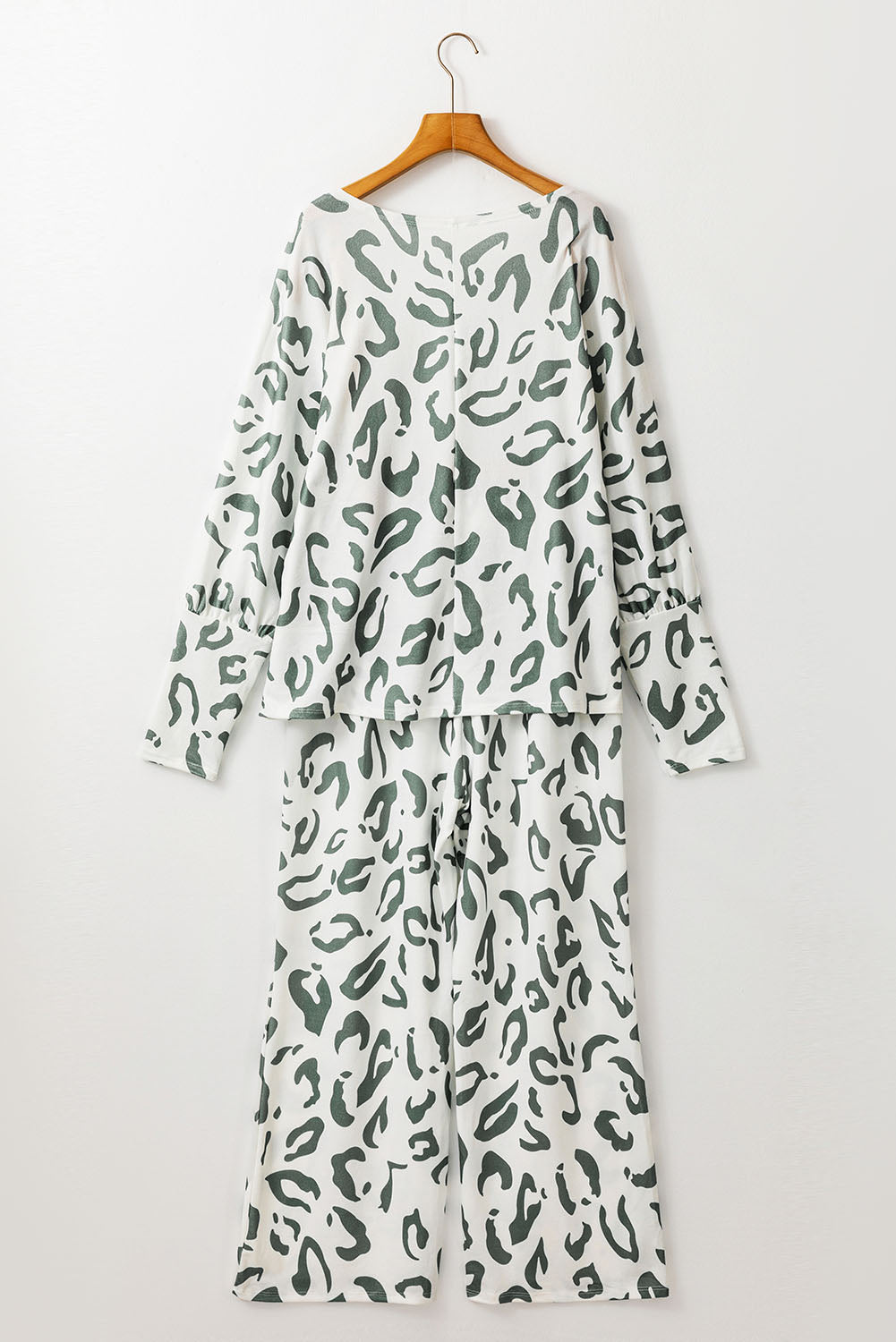 Beige Leopard Animal Print Long Sleeve and Pants Loungewear Set