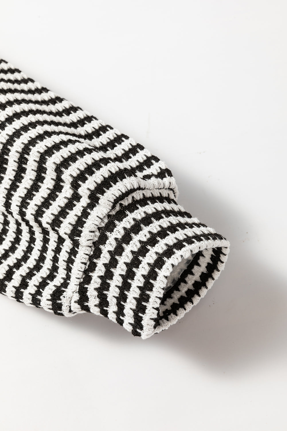 Black Stripe Round Neck Drop Shoulder Long Sleeve Top