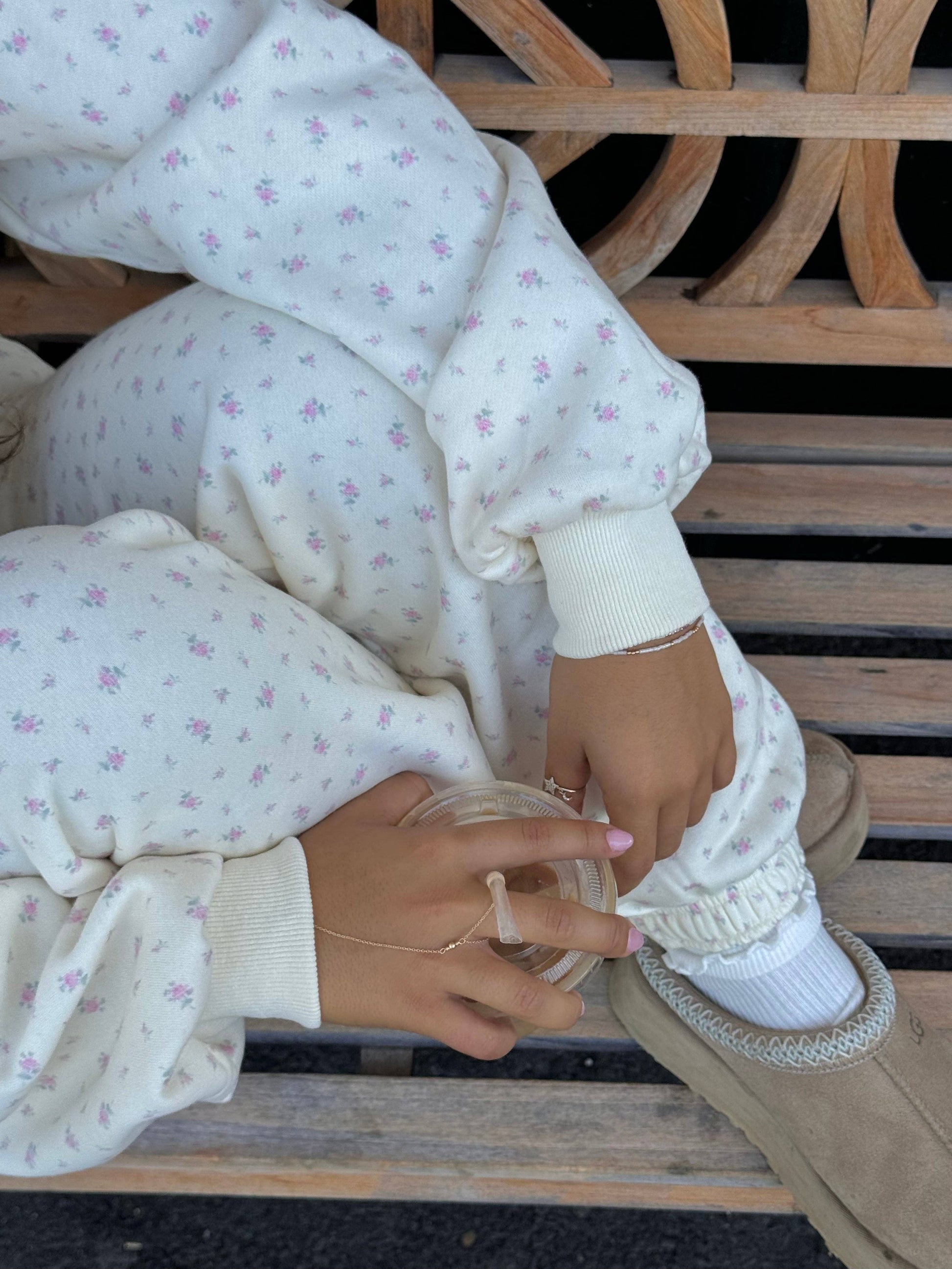 Introducing our Vintage Flower Lounge Sweatshirt – the perfect blend of comfort and style! Unwind in our lightweight and breathable sweatshirt and sweatpants combo, adorned with an adorable vintage flower print. Ideal for lounging or bedtime, the relaxed fit and charming design make this set a must-have for those who prioritize both relaxation and fashion. Elevate your at-home wardrobe with our Vintage Flower Lounge Set and embrace the joy of cozy chic!